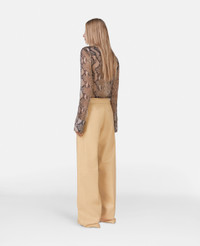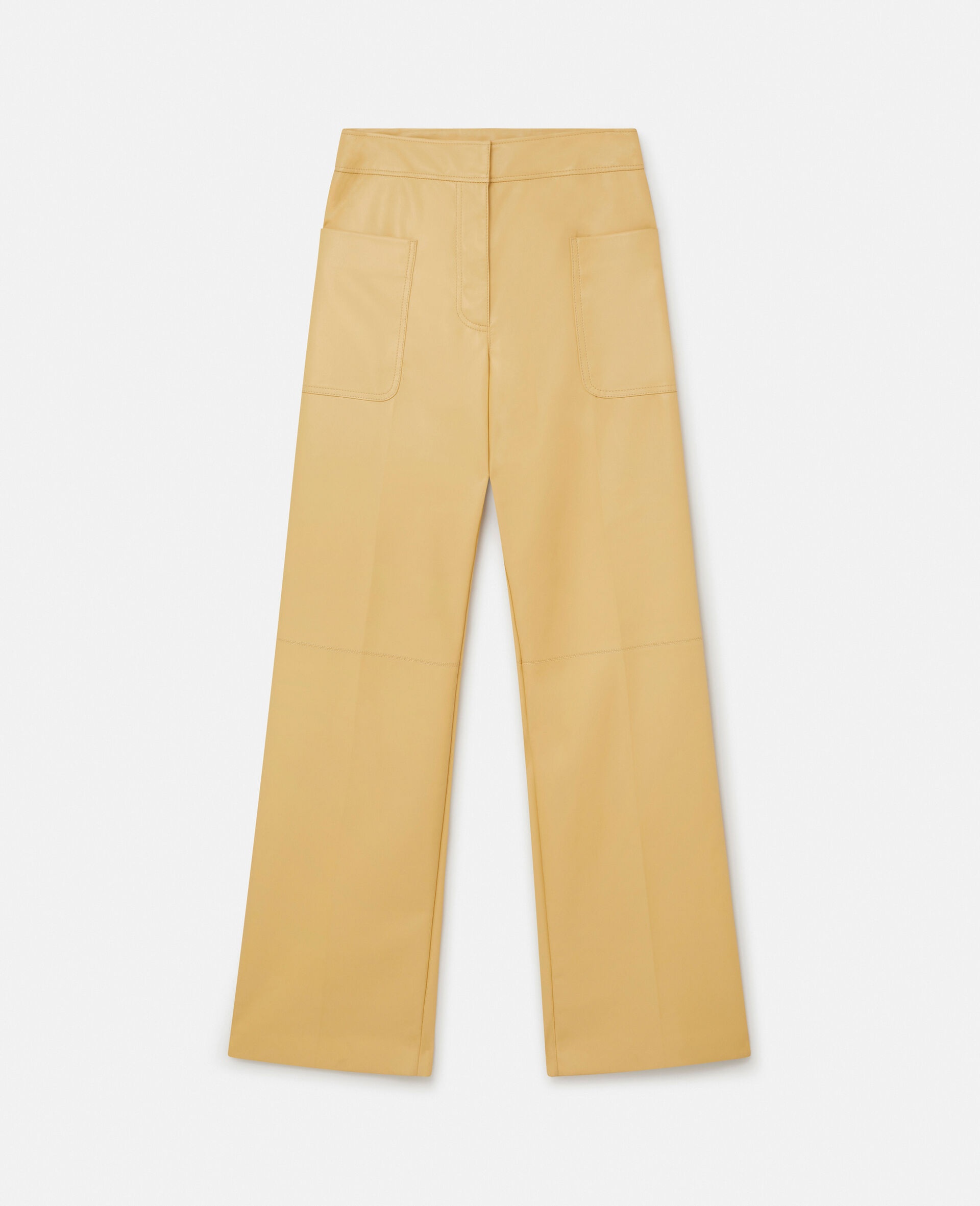 These wide leg trousers from Stella McCartney are crafted from butter yellow Alter Mat, our signature petal-soft vegan alternative to animal leather. Constructed with a minimal, concealed fastening and two front slip pockets, the trousers reflect our cruelty-free ethos. - Colour: Butter - Light butter yellow - Alter Mat vegan alternative to animal leather - Concealed hook fastening and zip fly - Two front slip pockets - Loose straight leg - Made in Italy Product Care & Fit Advice - Care: Dry clean only - Composition: Main fabric: 100% polyurethane, Backing: 100% polyester - Fits true to size - Designed for a regular fit - Mid-rise waist - Mid-weight, non-stretch fabric - Model is 5ft 10.5in./1.79m, is a size UK 6 and wears a size IT 40 (US 4-6/UK 8/FR 36)