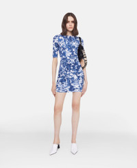 - Colour: Blue - Multi-tonal medium blue - Stretch GRS-certified recycled nylon denim - All-over animal forest crowded print - Crew neck - Short sleeves - Back zip fastening - Mini length - Made in Italy Product Care & Fit Advice - Care: Dry clean only - Composition: 73% recycled nylon, 27% elastane - Fits true to size - Designed for a regular fit - Midweight, semi-stretch fabric