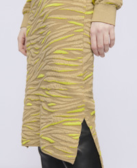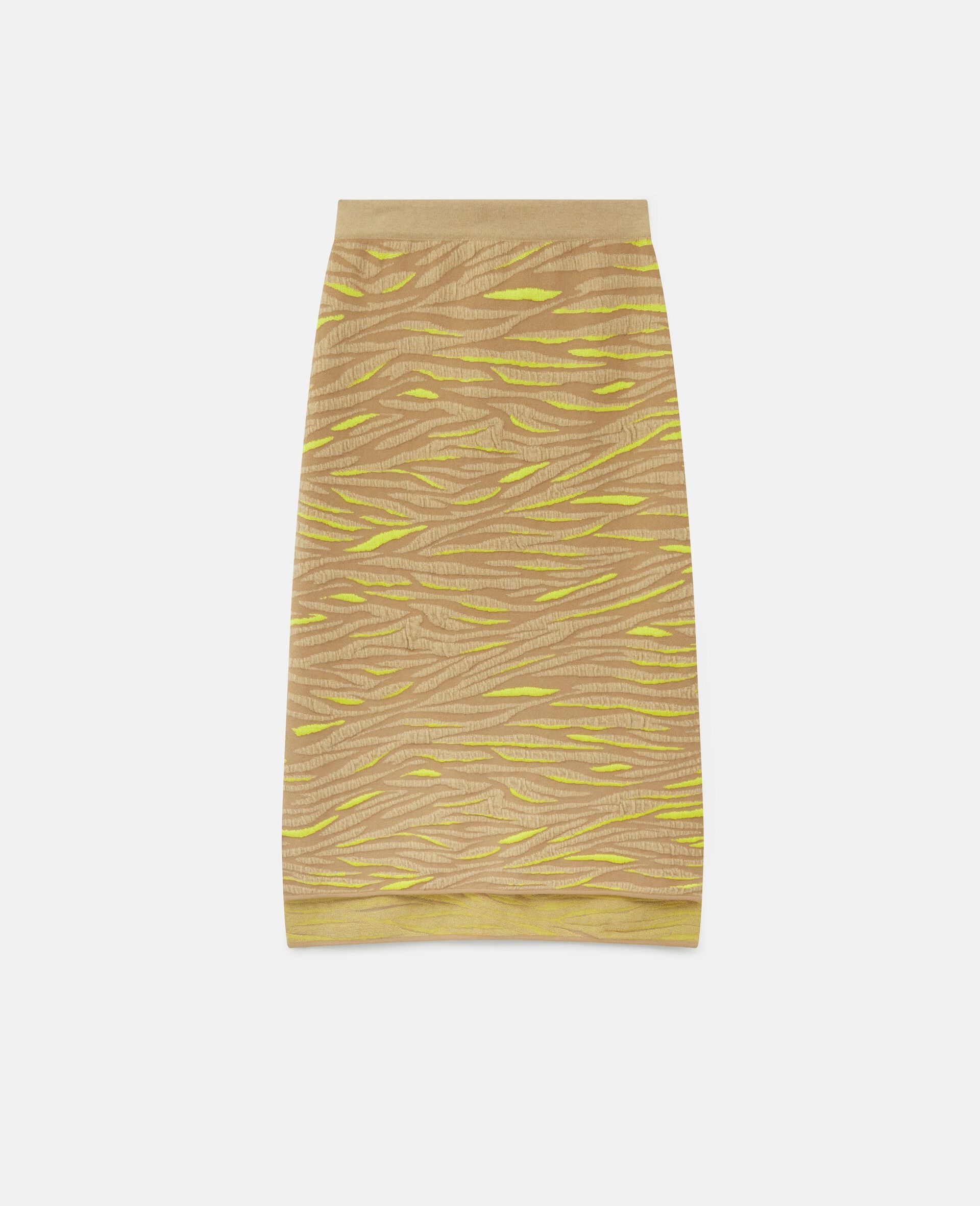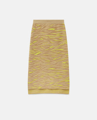 - Color: Camel - Skirt - Elasticated waist - Side splits, high-low hem - Animal pattern all over - Made in: Italy - Care: Dry clean - Composition: 48% Sustainable Viscose, 46% Virgin Wool, 6% Polyester - Fits true to size - Designed for a regular fit - Mid-weight, slightly stretchy fabric - Model is 5ft 10in/ 1.78m, is a size UK08 and wears a size IT40 (US04/ UK08/ FR36)