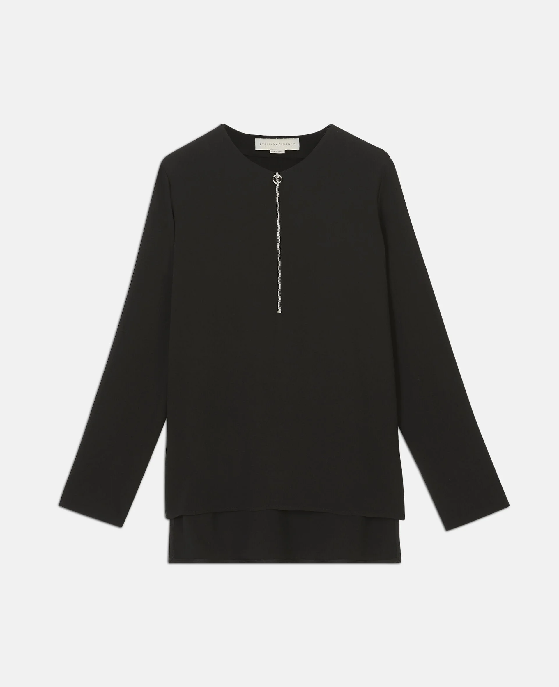 Item 341360SCA061000 A Stella foundational wardrobe essential, the Arlesa zip top embodies modern minimalism. It is crafted responsibly with forest-friendly viscose and features a clean half zip front with an engraved circular zip pull – a nod to our circular Stella vision for the future. - Colour: Black - Midnight black - Forest-friendly viscose-blend - Round neck - Long sleeves - Half-zip front with circular zip pull - Stepped hem Product Care & Fit Advice - Care: Dry clean only - Composition: 64% viscose, 32% acetate, 4% elastane - Fits true to size - Designed for a loose fit - Lightweight, slightly stretchy fabric - Model is 5ft 10in./1.78m, is a size UK08 and wears a size IT40 (US04/UK08/FR36)