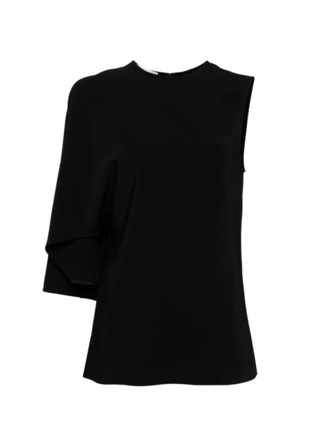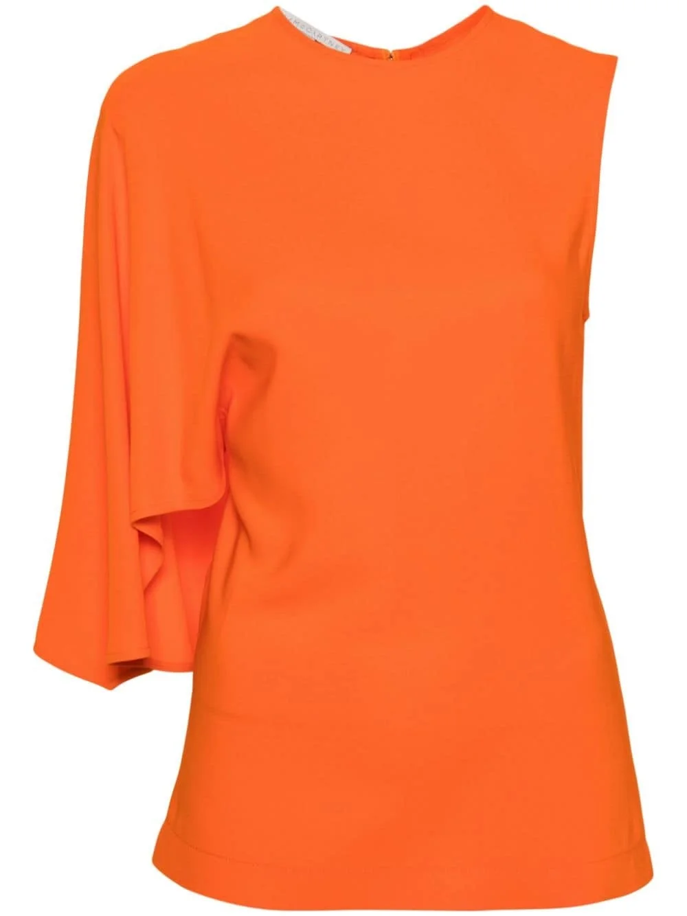 asymmetric cape-detailed top Highlights - Bright orange - Crepe texture - Asymmetric design - Round neck - Sleeveless/short sleeve - Cape design to the sleeve - Straight hem Imported Composition Viscose 96%, Elastane 4% SIZE & FIT Model measurements Height 5 ft 11 in(1.8 m) Bust/Chest 34.25 in(87 cm) Hips 35.82 in(91 cm) Waist 24.8 in(63 cm) FittingInformation Designed for a slim fit that sits just away from the body offering a close yet comfortable fit Made from a lightweight stretch fabric, this piece offers elasticity and flexibility when worn This piece fits true to size – take your usual size Washing instructions Dry Clean Only