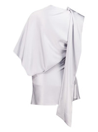 draped asymmetric top Highlights - White - Asymmetric draped sleeve - Asymmetric hem - Short sleeves Imported Composition Acetate 73%, Viscose 27% Washing instructions Read Manufacturer Guidelines