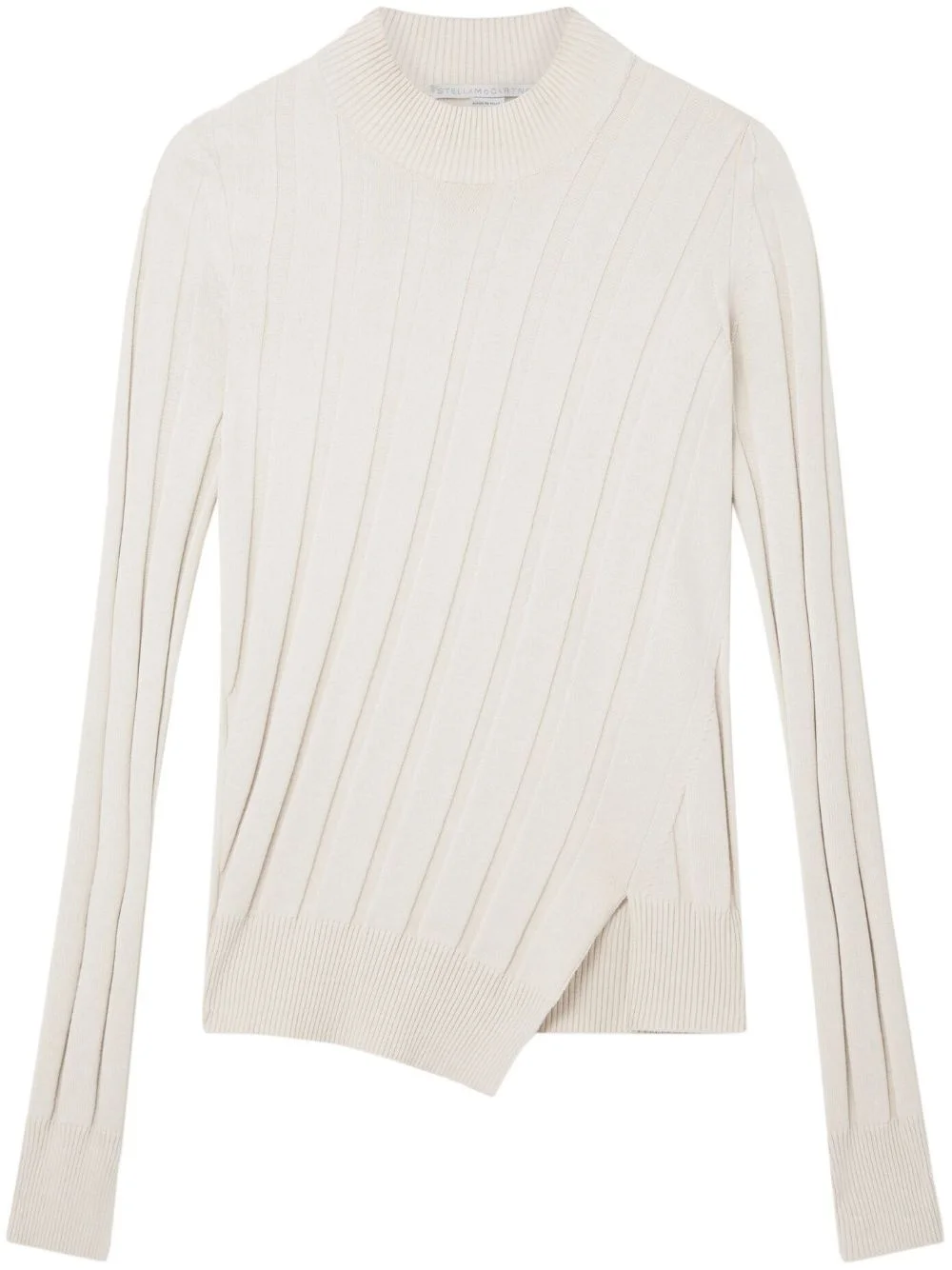 asymmetric-hem knit jumper Highlights - Off-white - Ribbed knit - Asymmetric hem - Round neck - Long sleeves Made in Italy Composition Viscose 80%, Polyester 20% Washing instructions Read Manufacturer Guidelines