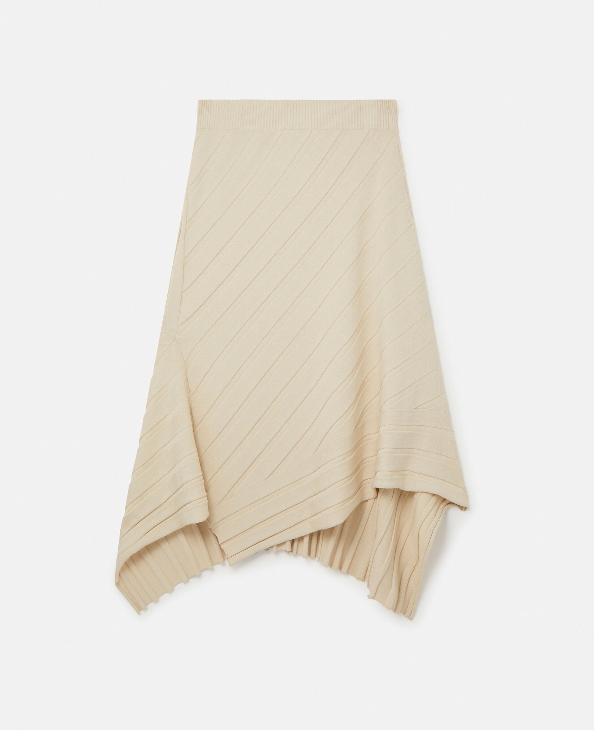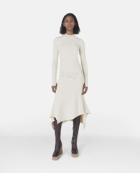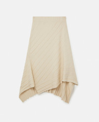 Responsibly made with forest-friendly viscose, this rib-knit skirt from Stella McCartney is an autumn staple. The high-rise skirt in oat cream has an asymmetric hem and elevated wide rib-knit pattern. - Colour: Cream - Oat cream - Forest-friendly viscose-blend wide rib knit - Elasticated waistband - Asymmetric hem - High-rise, knee length - Made in Italy Product Care & Fit Advice - Care: Dry clean only - Composition: Main fabric: 88% viscose, 12% polyester, Contrast: 77% viscose, 12% nylon, 10% polyester, 1% elastane - Fits true to size - Designed for a regular fit - Mid-weight, semi-stretch fabric - Model is 5ft 10.5in./1.79m, is a size UK 6 and wears a size IT 40 (US 4-6/UK 8/FR 36)