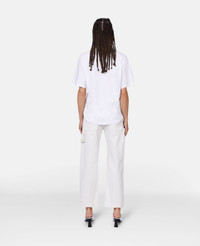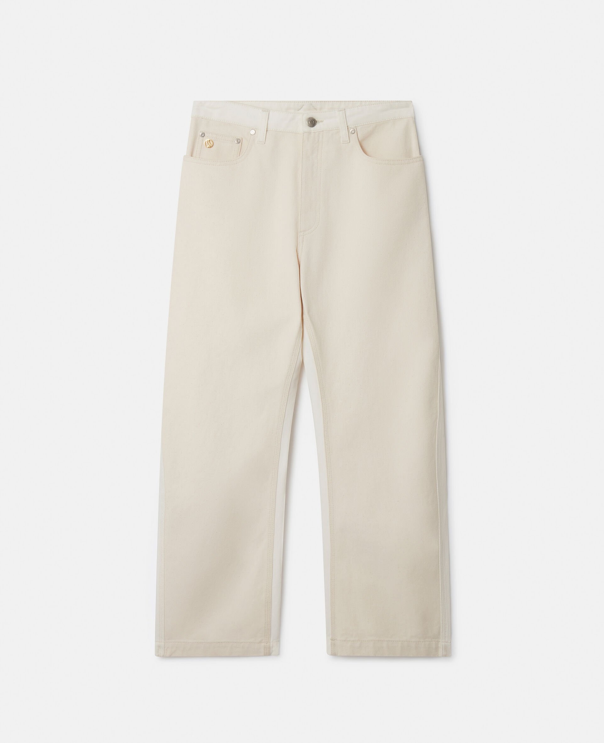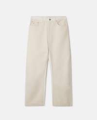 Item 6D02433SPH579067 - Colour: Ecru - Ecru - Organic cotton denim - Pure white back - Gold S-Wave medallion at hip - Stella McCartney logo patch at back - Zip fly with button secure - Belt loops - Five-pocket design - Banana leg - Made in Italy Product Care & Fit Advice - Care: Dry clean only - Composition: Main fabric: 100% organic cotton, Secondary fabric: 100% organic cotton - Fits true to size - Designed for a regular fit - Midweight, non-stretch fabric