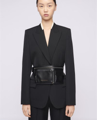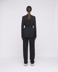 - Color: Black - Single-breasted jacket - Contrasting white detailing at the collar - Button closure, flap pockets - Clip sport belt at the waist - Made in: Italy - Care: Dry clean - Composition: 100% Traceable Wool, Lining 52% Sustainable Viscose, 48% Organic Cotton - Fits true to size - Designed for a regular fit - Mid-weight, non-stretchy fabric - Model is 5ft 10in/ 1.78m, is a size UK08 and wears a size IT40 (US04/ UK08/ FR36)