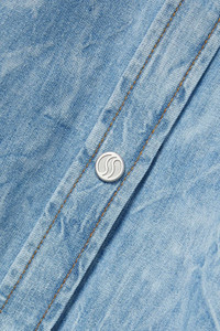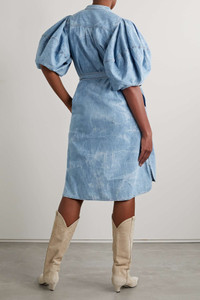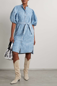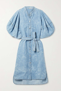 EDITORS'NOTES Stella McCartney's dress is made from denim that's faded and printed to give it a cool crinkled look. It has voluminous puffed sleeves and a self-tie belt so you can cinch the shape. Wear yours with sneakers or mules. SIZE & FIT - Fits true to size, take your normal size - Designed for a loose fit, use the tie belt to cinch in at the waist - Oversized sleeves - Lightweight, slightly stretchy fabric - Model is 180cm/ 5'11" and is wearing an IT 44 DETAILS & CARE - Light-blue denim - Snap fastenings through front - 100% cotton - Machine wash