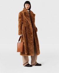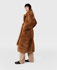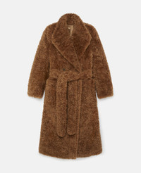 Item 6600883EU9012574 Forever pioneering innovations in cruelty-free alternatives to fur, Stella McCartney crafts this decadently soft coat from recycled polyester for Fall 2024. Shaped to what seems a sensible, longline silhouette with peak lapels and a belted waist, its fluffy texture blurs precision, embracing its wearer with plush, joyful warmth. - Color: Brown - Ginger brown - Soft, fluffy texture - Peak lapels - Long sleeves - Belted waist - Deep pockets at front - Ankle-length hem - Tie-front fastening - Made in Italy Product Care & Fit Advice Care: Dry clean only Composition: Main fabric: 100% polyester - Size: Fits true to size - Designed for an oversized fit - Heavyweight, non-stretch fabric