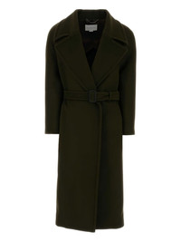 belted wool coat Highlights - Bottle green - Virgin wool - Notch lapels - Belted waist - Long sleeves Imported Composition Virgin Wool 100% Washing instructions Read Manufacturer Guidelines
