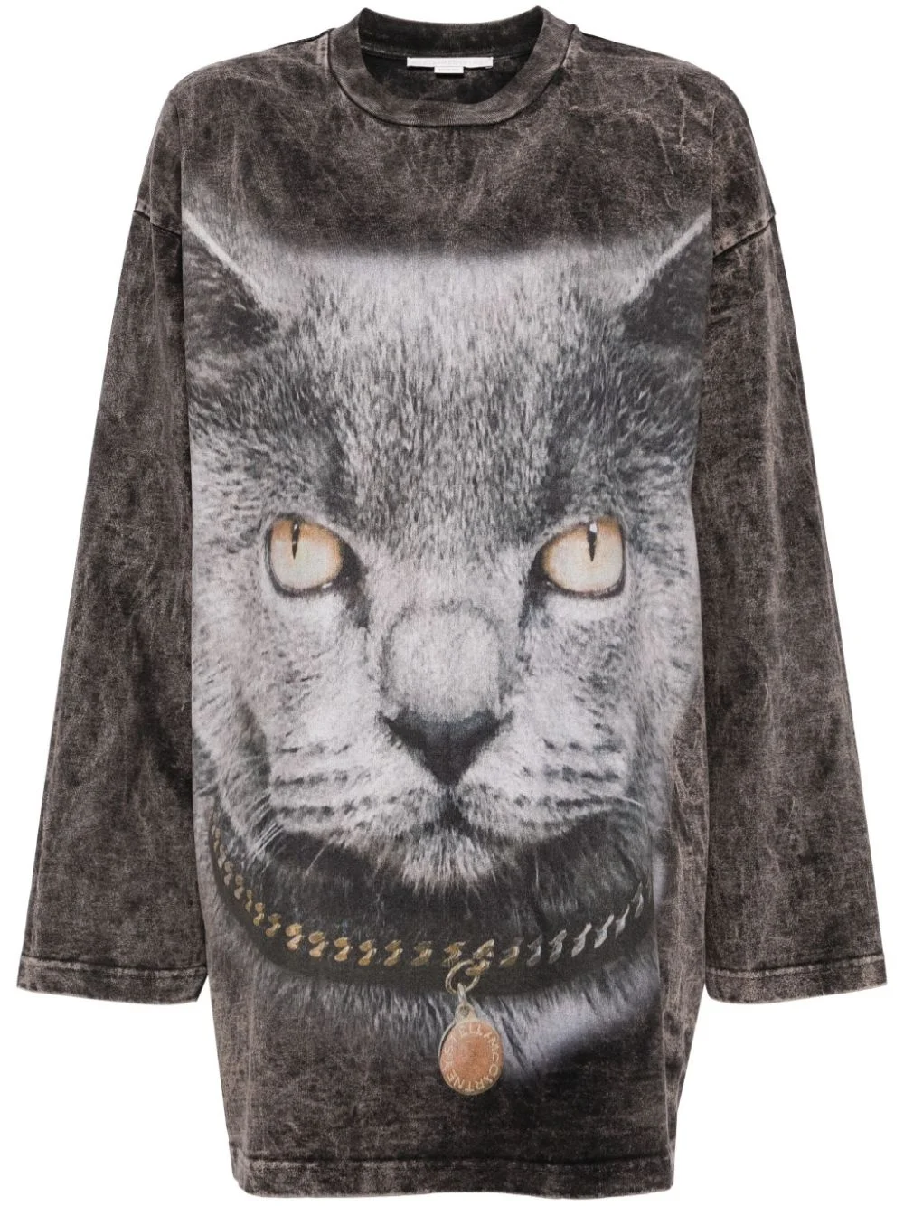 Big Cat T-shirt Highlights - Dark grey - Cotton - Jersey texture - Cat print - Crew neck - Drop shoulder - Long sleeves - Straight hem Made in Italy Composition Cotton 100%