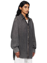 Non-stretch denim shirt. · Fading throughout · Spread collar · Logo flag at press-stud closure · Shirttail hem · Press-stud barrel cuffs · Pleats at back yoke · Contrast stitching in tan Made from cruelty-free, non-animal materials. Supplier color: Black denim wash 100% cotton. Made in Italy 252471F109000