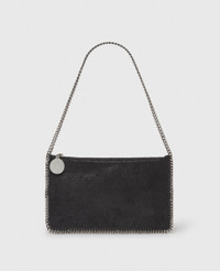 Item 7P0076W91321000U Our coveted and iconic Falabella is revisited in a sleek pochette silhouette for Spring 2025. The immediately recognizable glossy grained Shaggy Deer Fabric and glinting diamond-cut chain are reinterpreted for this playful, vegan shoulder bag – designed for the ultimate day-to-night appeal. - Color: Black - Comfortably fits all phones alongside small daily essentials - Matte vegan Shaggy Deer fabric with semi-gloss grain - Signature ruthenium recycled brass and aluminum diamond-cut chain - One shoulder strap - One main compartment - Zipper closure - Engraved ruthenium logo medallion - Recycled polyester monogram lining - Handcrafted in Italy Product Care & Fit Advice Care: Spot clean only with soft damp cloth. Composition: 100% Polyester - Fit: Comfortably fits all phones alongside small daily essentials - Size: 9.4 x 5.7 x 0.3 in - Handle drop: 8 in - Weighs approximately 6.7 oz