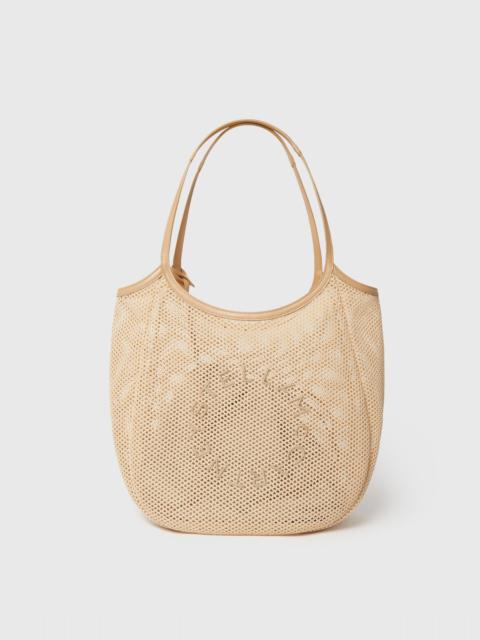 Item 7B0170WP05951000U This contemporary rendition of our classic hobo tote becomes a new day-to-day essential in mesh. Handwoven from recycled materials and trimmed with our vegan alternative to animal leather with an aged finish, it’s embroidered with a circular Stella McCartney logo and hangs two shoulder straps. Generously sized, there’s room for your laptop, phone and other daily essentials inside. - Color: Black - Comfortably fits 15” laptops alongside daily essentials - Cruelty-free, vegan alternative to animal leather trims - Embroidered Stella McCartney logo on front - Contrast single topstitching - Two shoulder straps - One main compartment - Detachable pouch inside - Netting made from recycled materials - Handcrafted in Italy - All of our shoes and accessories are made from non-leather materials in keeping with our cruelty-free ethos. Product Care & Fit Advice - Care: Spot clean only with soft damp cloth. - Composition: 100% Polyamide - This is a coated fabric - Fit: Comfortably fits 15” laptops alongside daily essentials - Size: 18.5 x 15.7 x 4.7 in - Strap length: 12.6 in - Weighs approximately 18.8 oz