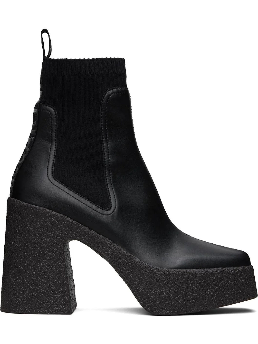 Ankle-high buffed VEGEA® faux-leather and rib-knit Chelsea boots in black. · Square toe · Rib knit collar · Logo-woven pull-loop at heel collar · Crepe rubber heel and platform sole · Platform: H1.5" · Heel: H4.25" Made from cruelty-free, non-animal materials. Supplier color: Black Upper: textile, synthetic. Sole: rubber. Made in Italy 252471F113002