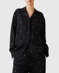 Item 6201473CU3511000 Part of a limited-edition edit, this sparkling, oversized shirt celebrates Ramadan and Eid. Blending modesty with modernity and tradition with innovation, the lead-free crystal embellished capsule includes ready-to-wear and vegan accessories inspired by traditional silhouettes. - Color: Black - All-over lead-free crystal embroidery - Flat collar - Long sleeves - Buttoned cuffs - Waist-length hem - Button fastening - Made in Italy Product Care & Fit Advice - Care: Dry clean only - Composition: 100% viscose - Fit: Regular fit - Sizing: Take your usual size - Lightweight, non-stretch fabric