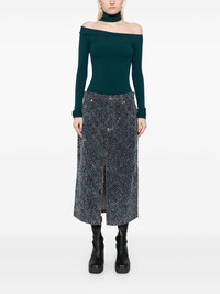 boucle denim skirt Highlights - Blue/white - Cotton - Boucle construction - Denim - Concealed zip-fly and button fastening - Contrast stitching - Contrast stitching - Belt loops - Classic five pockets - Logo patch to the rear - Mid-calf length - Front slit - Rear slit Made in Italy Composition Cotton 100% SIZE & FIT Model measurements Height 5 ft 9 in(1.76 m) Bust/Chest 31.1 in(79 cm) Hips 35.03 in(89 cm) Waist 24.4 in(62 cm) Measurement HIPS 36.22 in(92 cm) LENGTH 31.49 in(80 cm) WAIST 29.13 in(74 cm)