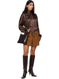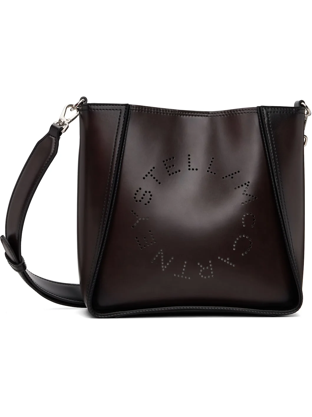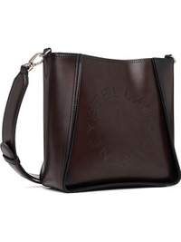 Handcrafted buffed faux-leather shoulder bag. · Adjustable and detachable logo-embossed crossbody strap · Perforated logo at face · Press-stud closure · Faux-suede interior · Card slots at interior · H9" x W9" x D3" Made from cruelty-free, non-animal materials. Supplier color: Black brown Synthetic. Made in Italy 252471F048026