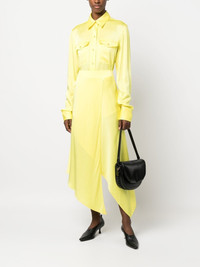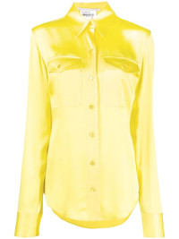 button-up satin shirt Highlights - Lemon yellow - Satin finish - Classic collar - Front button fastening - Long sleeves - Curved hem Imported Composition Viscose 59%, Acetate 41% SIZE & FIT Model measurements Height 5 ft 10 in(1.77 m) Bust/Chest 29.92 in(76 cm) Hips 34.25 in(87 cm) Waist 23.62 in(60 cm) FittingInformation This piece fits true to size. We recommend you get your regular size Cut for a slim fit Made with a mid-weight non-stretch fabric Washing instructions Dry Clean Only