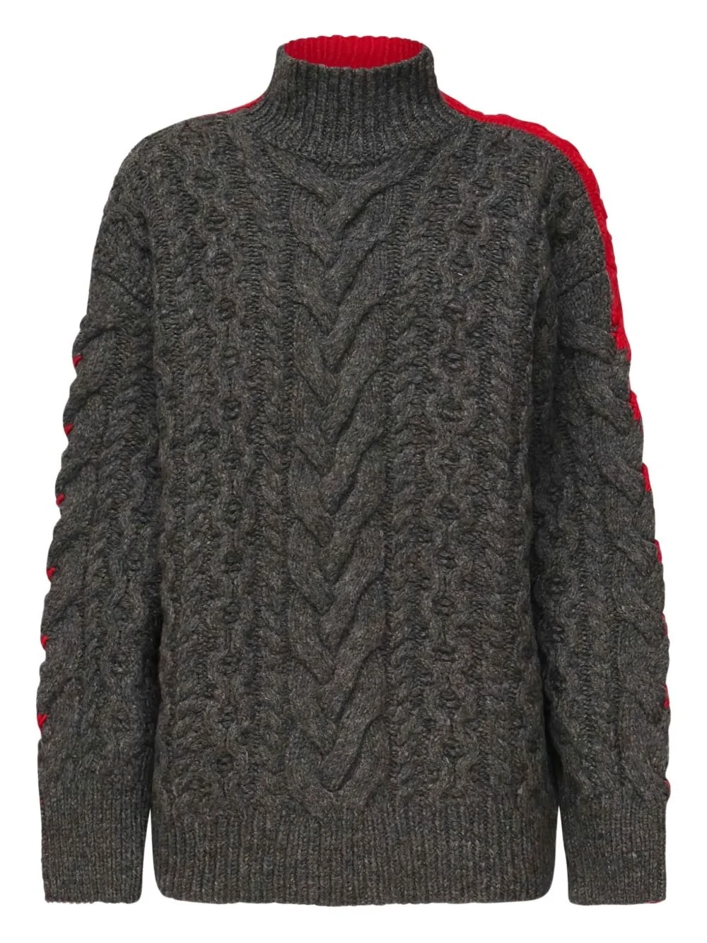 cable-knit high-neck sweater Highlights - Dark grey - Cable knit - High neck - Red panelling - Long sleeves Made in Italy Composition Virgin Wool 78%, Polyamide 22% Outer: Virgin Wool 100% Washing instructions Read Manufacturer Guidelines