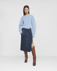 Autumn 2022 is made for an ambitious Stella McCartney woman – desiring to be her best self in all aspects of her life, reflecting her dynamic moods and ageless attitudes. We revisit classic statement pieces that every wardrobe needs, bringing them into the now and elevating them with signature Stella twists - Colour: Sky Blue - Knit jumper - Crew neck, long sleeves - Cable knit design - Ribbed cuffs and collar - Dropped shoulders - Made in Romania Product Care & Fit Advice - Care: Dry Clean - Composition: 100% Virgin Wool - Fits true to size - Designed for a regular fit - Mid-weight, non-stretchy fabric