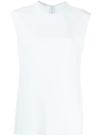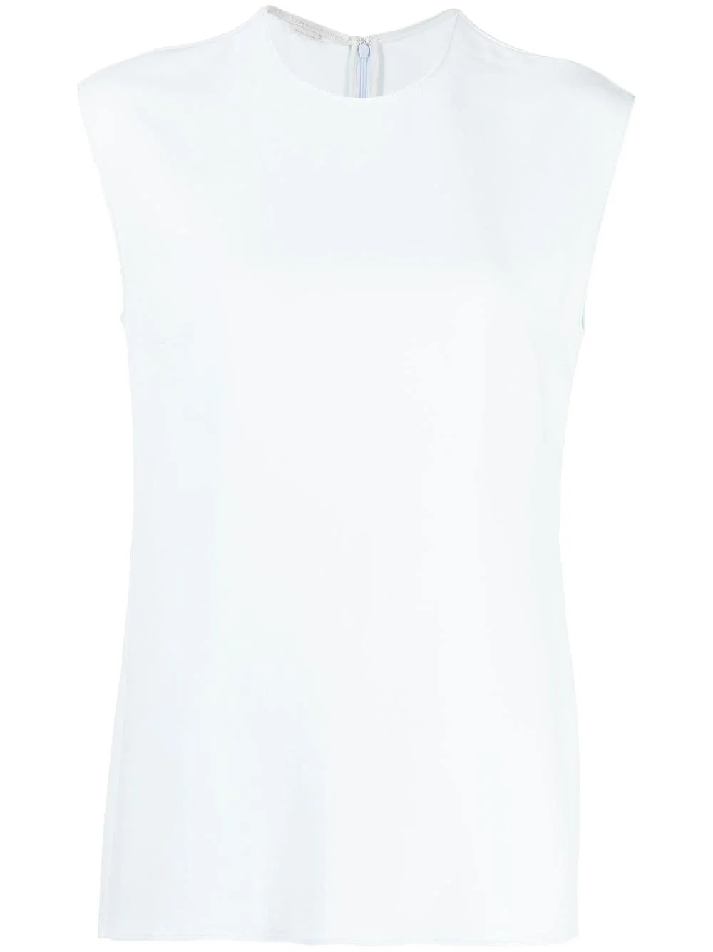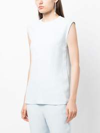 Cady cap-sleeved blouse Highlights - Ice blue - Stretch-design - Satin finish - Tonal stitching - Crew neck - Concealed rear zip fastening - Cap sleeves - Straight hem Made in Italy Composition Viscose 66%, Acetate 30%, Elastane 4% SIZE & FIT Model measurements Height 5 ft 10 in(1.78 m) Bust/Chest 30.31 in(77 cm) Hips 34.64 in(88 cm) Waist 24.01 in(61 cm) FittingInformation Designed to be unstructured, offering a loose fit throughout Made from a midweight stretch fabric, this piece offers elasticity and flexibility when worn This piece fits true to size – take your usual size
