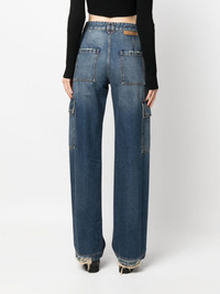 cargo-pockets straight-leg jeans Highlights - Indigo blue - Cotton - Washed denim - Whiskering effect - High-waisted - Belt loops - Logo patch to the rear - Concealed fly and button fastening - Two side cargo pockets - Two side slash pockets - Two rear patch pockets - Straight leg Made in Italy Composition Outer: Cotton 100% Lining: Polyester 57%, Cotton 40%, Viscose 3% SIZE & FIT Model measurements Height 5 ft 10 in(1.78 m) Bust/Chest 31.49 in(80 cm) Hips 36.22 in(92 cm) Waist 25.59 in(65 cm) FittingInformation Designed for a straight-leg fit, these jeans allow for a close fit at the waist and an unrestricted and comfortable fit over the leg Sturdy and hard-wearing, this denim piece offers no stretch This piece fits true to size – take your usual size Washing instructions Machine Wash