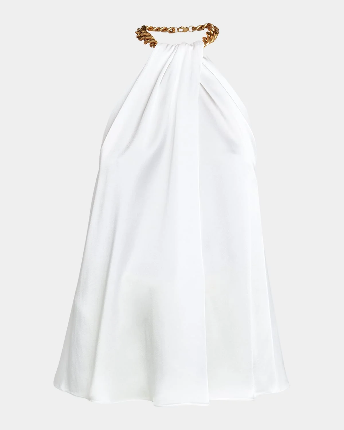 Stella McCartney top featuring a goldtone chain choker and neck gathering detail Halter neckline Sleeveless Relaxed fit Hidden closure Acetate/viscose Made in Italy