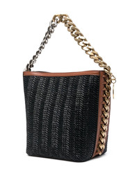 chain-link medium tote bag This bag from Stella McCartney takes inspiration from the chain-link detailing on the iconic Falabella bag and features it more prominently and boldly. The chunky gold-tone chain-link strap contrasts with the understated nature of the black colourway to create a truly stunning accessory. Highlights - Black/brown - Charm detail - Textured finish - Contrasting trim - Chain-link handle - Adjustable detachable shoulder strap - Gold-tone hardware Made in Italy Composition Outer: Polypropylene 100% SIZE & FIT Model measurements Height 5 ft 10 in(1.78 m) Bust/Chest 31.49 in(80 cm) Hips 36.22 in(92 cm) Waist 25.59 in(65 cm) Measurement DEPTH 4.33 in(11 cm) HANDLE 4.72 in(12 cm) HEIGHT 7.87 in(20 cm) STRAP 18.5 in(47 cm) WIDTH 7.87 in(20 cm)