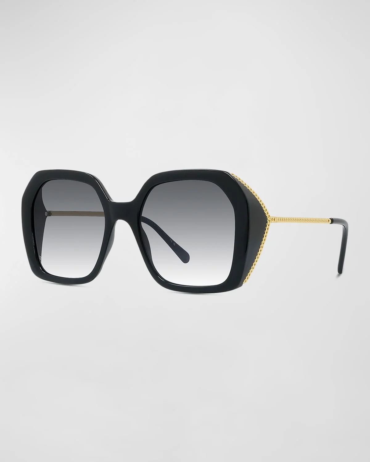 Stella McCartney butterfly sunglasses in acetate and stainless steel chain & nbsp; Lens/bridge/temple (in mm): 54-19-130 Gradient lenses & nbsp; Saddle nose bridge & nbsp; Thin, tapered arms & nbsp; Capped earpieces & nbsp; 100% UVA/UVB protection Imported Fashioned for change: sustainable materials. Find out more here Proposition 65 warning for California residents