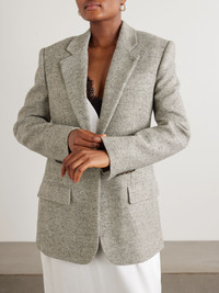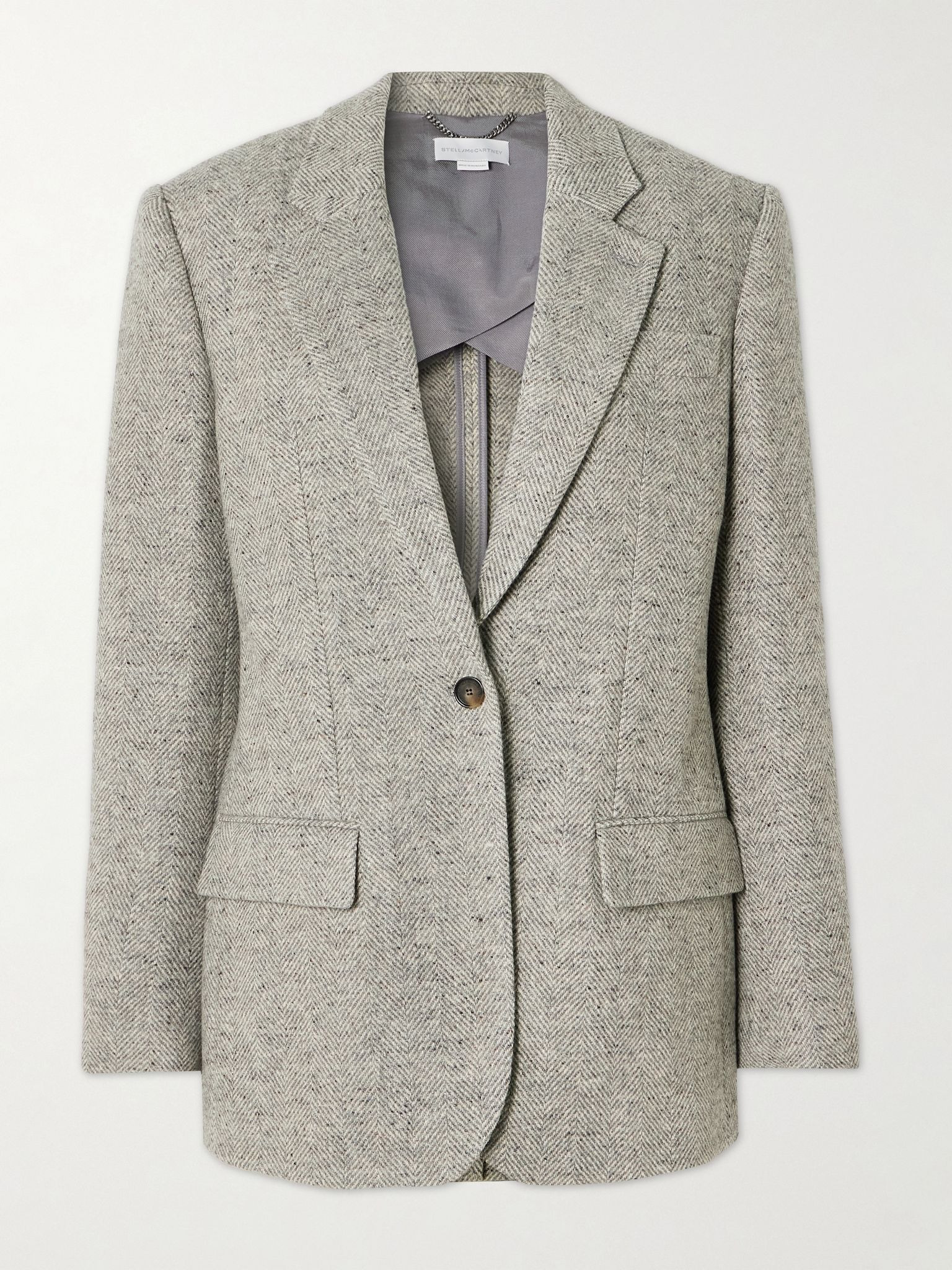Stella McCartney is led by what women want to wear in real life - an approach that's earned her patrons on and off the red carpet. This herringbone blazer is cut in a single-breasted profile from wool and silk-blend herringbone, giving it a timeless, almost heritage feel. The structure and full lining create such a sharp silhouette. Size & Fit - Fits true to size, take your normal size - Designed for a slim fit - Internal shoulder pads - Mid-weight, non-stretchy fabric - Model is 177cm/ 5'10" and is wearing an IT 40 Model measurements: - Bust: 80cm/ 31.5" - Waist: 65cm/ 25.5" - Hip: 89cm/ 35" Details & Care - Gray melange wool and silk-blend herringbone - Button fastening at front - 70% wool, 30% silk; lining: 52% viscose, 48% cotton - Fully lined - Dry clean