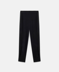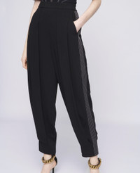 - Color: Black - Pleated pants - Elasticated waist, slant pockets - Contrasting white stitching on the sides - Made in: Ukraine - Care: Dry clean - Composition: 64% Sustainable Viscose, 32% Acetate, 4% Elastane - Fits true to size - Designed for a regular fit - Mid-weight, slightly stretchy fabric - Model is 5ft 10in/ 1.78m, is a size UK08 and wears a size IT40 (US04/ UK08/ FR36)