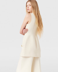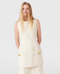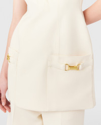 Item 6A04193EU6059200 Elevateds hardware details run through Stella McCartney’s Fall 2024 collection. This dress is tailored in a thick wool-blend scuba repurposed from NONA Source deadstock fabrics to reduce waste – cut to a sculptural, thigh-skimming silhouette. Detailed with gold clasps stitched on two slip pockets for a utilitarian fashion touch. - Color: Cream - Cream white - Round neck - Sleeveless - Two front pockets - Two seams running down the center - Gold clasps on each pocket - Thigh-length hem - Zipper fastening at back - Made in Hungary Product Care & Fit Advice Care: Dry clean only Composition: Main fabric: 60% viscose 40% wool - Size: Fits true to size - Designed for a regular fit - Midweight, non-stretch fabric