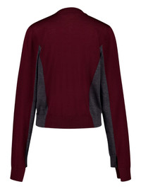 colour-block wool cardigan Highlights - Red - Grey wool panels - Button fastening - Long sleeves - Split cuffs - Asymmetrical hem Made in Italy Composition Virgin Wool 100% Washing instructions Read Manufacturer Guidelines