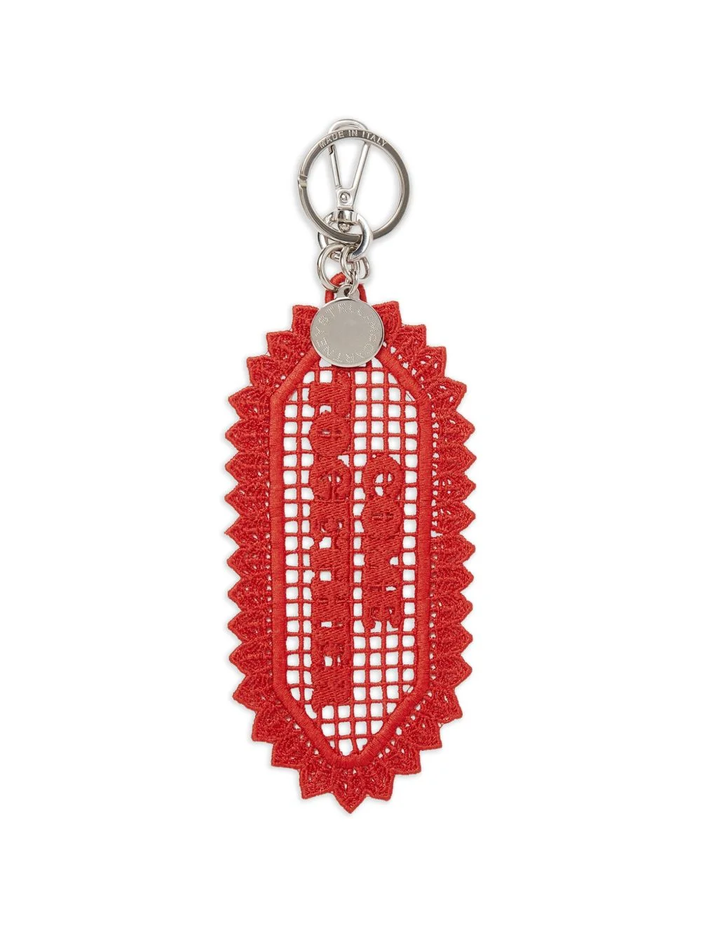 Come Together crochet keyring Highlights - Red - Crochet detailing - Silver-tone hardware - Lobster claw fastening - Tag shape - Scalloped trim Made in Italy Composition Polyester 100%