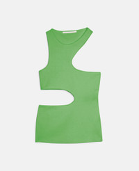 Summer 2022 evokes a sensual femininity, encouraging Stella women to redefine sexiness with an effortless and vibrant wardrobe. It harmonizes billowing shapes with bodycon silhouettes, near-transparent airiness with rich textures, and biophilic cut-outs on psychedelic prints. - Color: Fluo Green - Knit top - Cut-outs on the left shoulder and right waist - Crew neck, sleeveless - Compact knit fabric - Made in: Italy Product Care & Fit Advice - Care: Dry Clean - Composition: 83% Sustainable Viscose, 17% Polyeste - Fits true to size - Designed for a tight fit - Lightweight, stretchy fabric - Model is 5 ft 9.5 in/1.77 m, is a size UK 8 and wears a size IT 38 (US 2-4/FR 34)