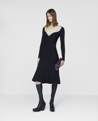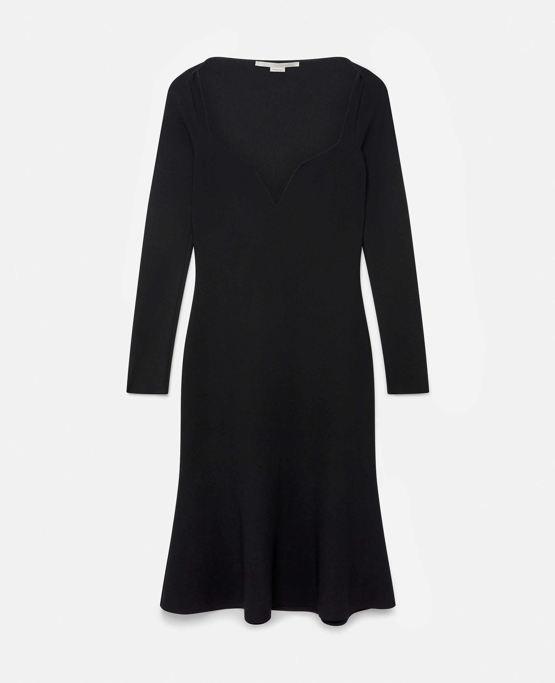 - Colour: Black - Midi Dress - Sweetheart neckline - Compact knit fabric - Long tight sleeves - Made in: Italy Product Care & Fit Advice - Care: Dry Clean - Composition: 83% Sustainable Viscose, 17% Polyester - Fits true to size - Tight fit on the top, voluminous skirt - Mid-weight, stretchy fabric - Model is 5 ft 11 in/1.80 m, is a size UK 10 and wears a size IT 40 (US 4/UK 10/FR 36)