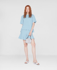 Spring 2022 is a time for renewal and a return to (night)life, made for Stella women who live in the moment and are conscious of tomorrow. The collection blends the nostalgic with the futuristic, connecting the experimental aesthetics of Y2K music subcultures and club kids to the digital youth of today. - Color: Light Blue - Knit shorts - Compact knit - Elasticated waist - Slant pockets - Flowy design - Made in: Italy Product Care & Fit Advice - Care: Dry Clean - Composition: 83% Sustainable Viscose, 17% Polyester; 75% Viscose, 15% Polyester, 9% Polyamid, 1% Elastan - Fits true to size - Designed for a regular fit - Mid-weight, Slightly stretchy fabric - Model is 5ft 10in/ 1.78m, is a size US 4 and wears a size IT 40 (UK 8/FR 36)