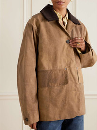 EDITORS'NOTES Stella McCartney's jacket is modeled on rugged workwear. It's made from panels of organic cotton-canvas, which has been washed to achieve its purposely timeworn finish. Cut for a loose fit, it has three front pockets and a contrasting corduroy collar. Lower-Impact Materials. This product is made using at least 50% lower-impact materials or ingredients. Find out more about our NET SUSTAIN criteria here. SIZE & FIT Model measurements: - Fits true to size, however those who are between sizes should take the smaller size - Designed for a loose fit - Mid-weight, non-stretchy fabric - Model is 180cm/ 5'11" and is wearing an IT 40 - Bust: 85cm/ 33.5" - Waist: 62cm/ 24.5" - Hip: 88cm/ 34.5" DETAILS & CARE - Tan washed organic cotton-canvas, brown cotton-corduroy - Button fastenings through front - 100% organic cotton - Dry clean