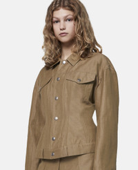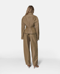 The soft corsetting that is emblematic of this season reigns on this caramel tan utility jacket. The jacket is consciously crafted from GOTS-certified cotton tailoring fabric, with chest pockets and a utilitarian belt loop hem. - Colour: Caramel - Mid-toned caramel - GOTS-certified cotton tailoring fabric - Point collar - Long sleeves with button cuffs - Corset waist - Two chest flap pockets - Button-through fastening - Belt loops at hem Product Care & Fit Advice - Care: Dry clean only - Composition: 66% cotton, 34% linen - Fits true to size - Designed for a regular fit - Midweight, non-stretch fabric - Model is 5ft 9.5in/1.76m, is a size UK 6 and wears a size IT 40 (US 4-6/UK 8/FR 36)