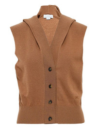 hooded sleeveless cardigan Highlights - Brown - Ribbed hem - Button fastening - Sleeveless - Hooded neck Made in Italy Composition Virgin Wool 100% Washing instructions Read Manufacturer Guidelines
