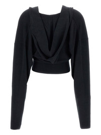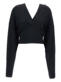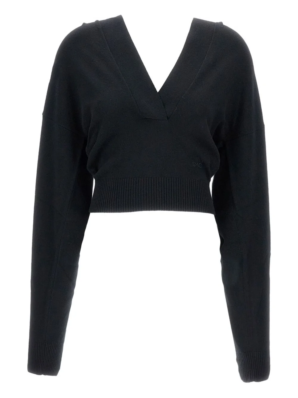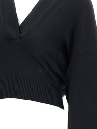 embroidered-logo sweater Highlights - Black - V-neck - Embroidered logo - Hooded neck - Long sleeves - Ribbed hem - Ribbed cuffs Made in Italy Composition Virgin Wool 89%, Polyamide 10%, Lyocell 1% Washing instructions Read Manufacturer Guidelines