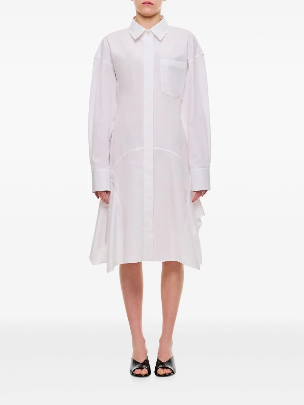 flared shirt dress Highlights - White - Front button fastening - Classic collar - Chest patch pocket - Flared skirt Imported Composition Cotton 100%