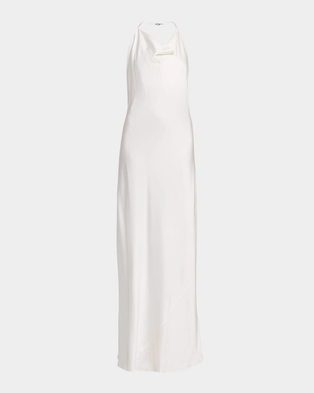 Cowl-Neck Enverse Satin Backless Halter Gown