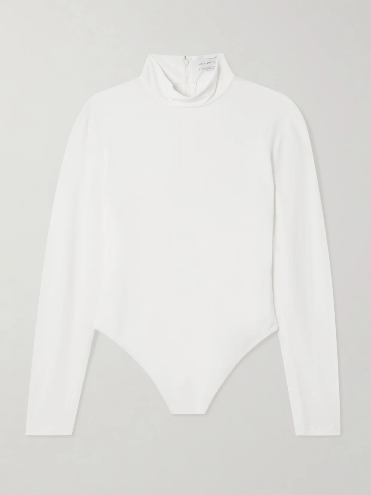Stella McCartney's bodysuit layers nicely under most everything. It's made from certified crepe de chine with a chic turtleneck collar. Lower-Impact Materials. This product is made using at least 50% lower-impact materials or ingredients. Find out more about our NET SUSTAIN criteria here.