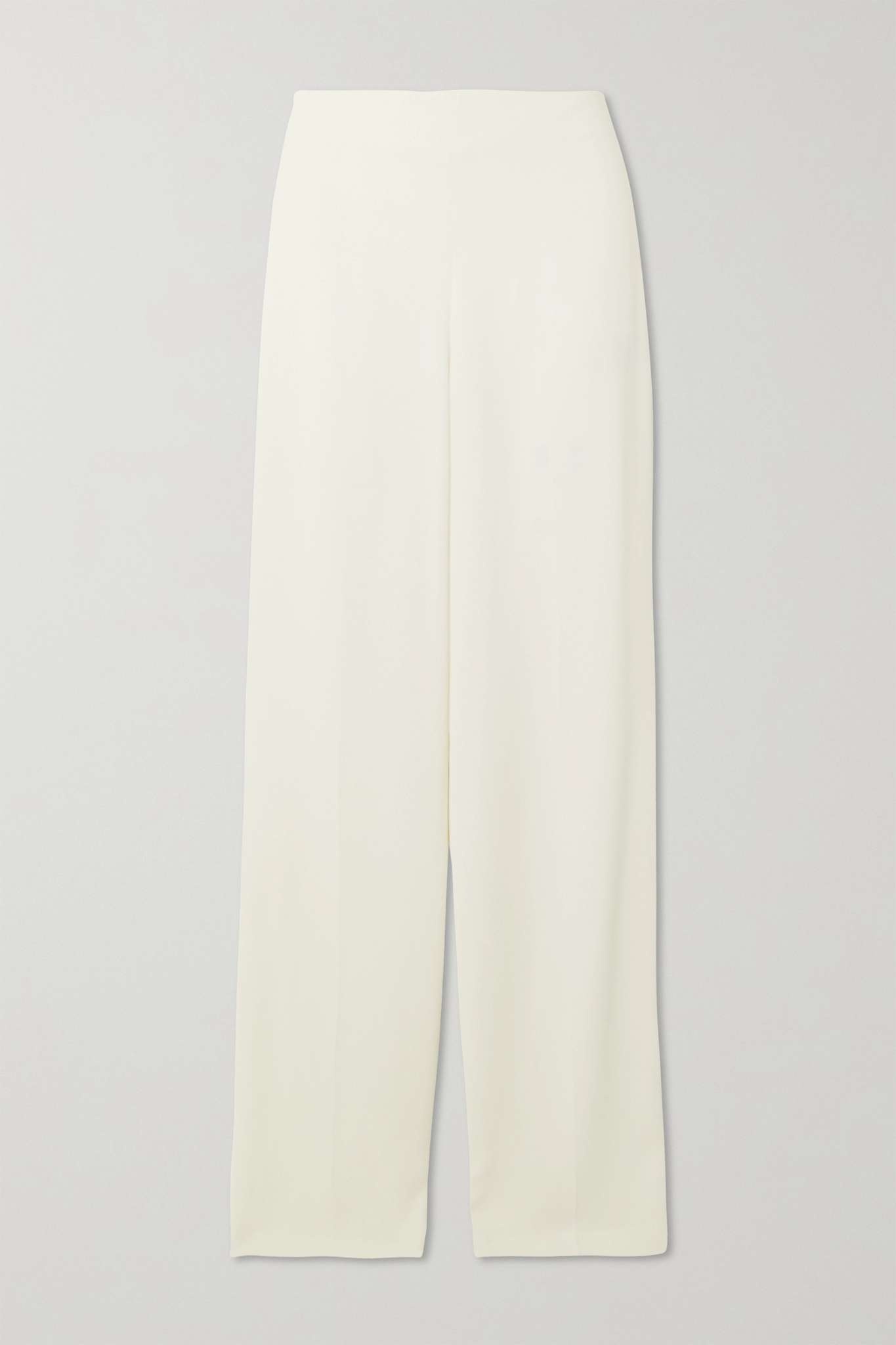 EDITORS'NOTES Stella McCartney's contemporary approach to tailoring feels as sophisticated as it does cool. These pants are tailored from crepe for a relaxed fit, with slouchy wide legs and elongated hems. Showcase the structured high-rise waistband by styling yours with a cropped jacket. SIZE & FIT - Fits true to size, take your normal size - High-rise, cut for a wide-leg fit - Lightweight, slightly stretchy fabric - Model is 180cm/ 5’11” and is wearing an IT 40 DETAILS & CARE - Off-white crepe - Hook and concealed zip fastening along side - 96% viscose, 4% elastane - Dry clean