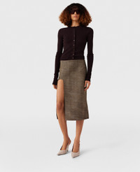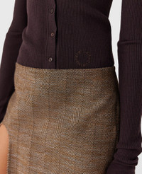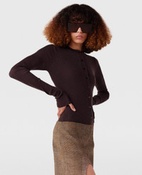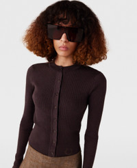 Item 6K08893S25372100 Spun from soft RWS-certified wool, this ribbed cardigan from Stella McCartney's Winter 2024 collection is a wardrobe staple. Endlessly versatile, slip it on with baggy denim jeans for a cozy, casual look or pair it with a mini dress to escape evening chills. - Color: Dark brown - Long sleeves - Ribbed elasticated cuffs - Tonal buttons - Button fastening - Ribbed trims - Made in Italy Product Care & Fit Advice Care: Dry clean only Composition: 100% virgin wool