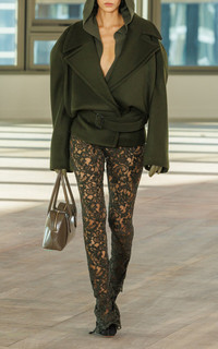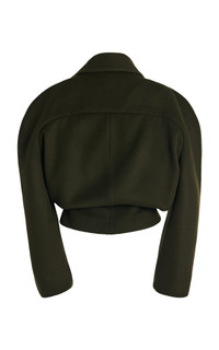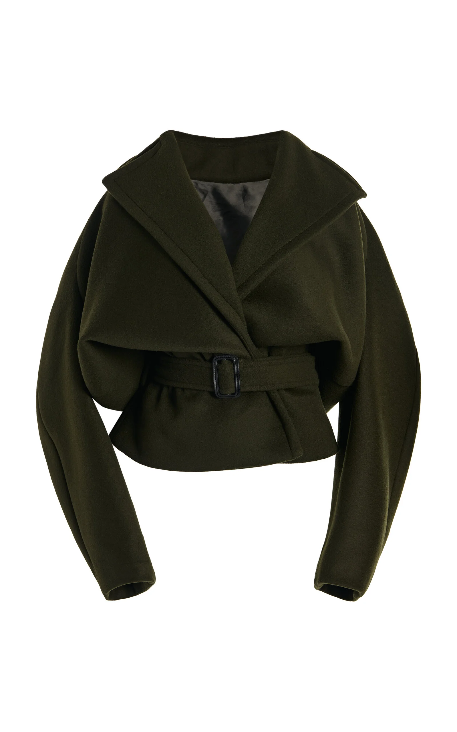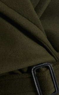 PRODUCT DETAILS - Long sleeve, oversized fit, belted - Button fastening through front - Composition: 100% Wool - Color: olive - Dry clean only - Fall/Winter '25