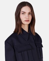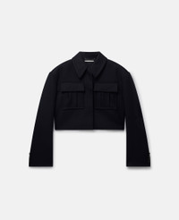 This black cargo jacket nods to British regalia with its pristinely cut shoulders, point collar and neat cargo pockets. Match it to the coordinating trousers. - Colour: Ink - Inky midnight black - 100% GRS-certified recycled polyester - Point collar - Long sleeves - Concealed button-through fastening - Two chest cargo pockets - Fully lined Product Care & Fit Advice - Care: Dry clean only - Composition: 100% recycled polyester - Fits true to size - Designed for a boxy fit - Mid-weight, non-stretch fabric