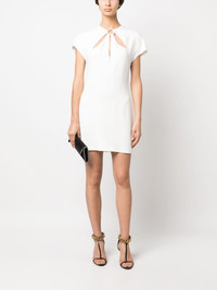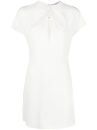 cut-out short-sleeve minidress Adding a twist to the classic white minidress, Stella McCartney crafts this design in Italy from sustainable viscose. Cut to a thigh-length, it boasts teardrop-shaped cut-out details around the neckline. Highlights - Cream white - Sustainable viscose blend - Short sleeves - Cut-out detailing - Ring hardware detailing - Concealed rear zip fastening - Thigh-length Made in Italy Composition Viscose 96%, Spandex/Elastane 4% SIZE & FIT Model measurements Height 5 ft 11 in(1.8 m) Bust/Chest 31.49 in(80 cm) Hips 35.43 in(90 cm) Waist 24.4 in(62 cm) FittingInformation Designed for a slim fit that sits just away from the body offering a close yet comfortable fit Made from a midweight stretch fabric, this piece offers elasticity and flexibility when worn This piece fits true to size – take your usual size Washing instructions Dry Clean Only