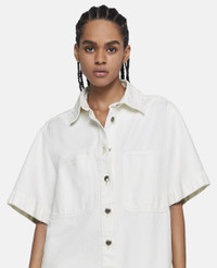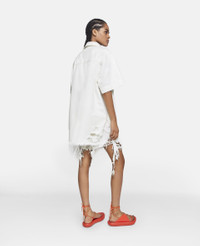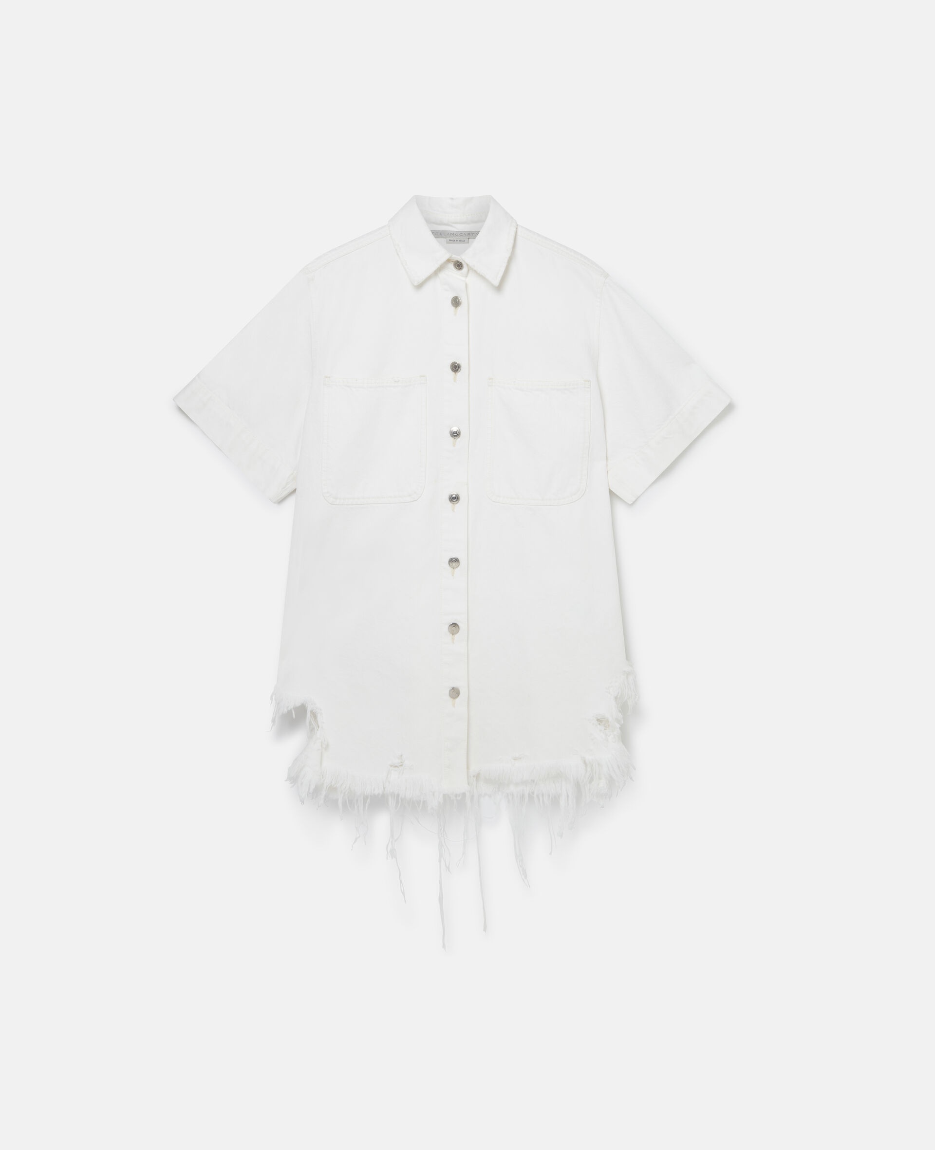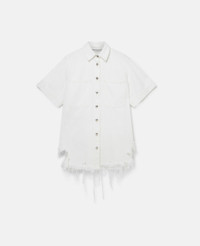 Summer whites are revisited with this chalk white wash denim shirt from Stella McCartney. Consciously crafted from organic cotton, the denim shirt is brought into the now with a fearless, deconstructed ripped hem. - Colour: White - Chalk white wash - Organic cotton denim - Stella McCartney logo patch at back - Point collar - Short sleeves - Button-through fastening - Left chest patch pocket - Oversized fit Product Care & Fit Advice - Care: Dry clean only - Composition: 100% organic cotton - Fits true to size - Designed for a boyfriend fit - Midweight, non-stretch fabric - Model is 5ft 10.5in/1.79m, is a size UK 6 and wears a size IT 40 (US 4-6/UK 8/FR 36)